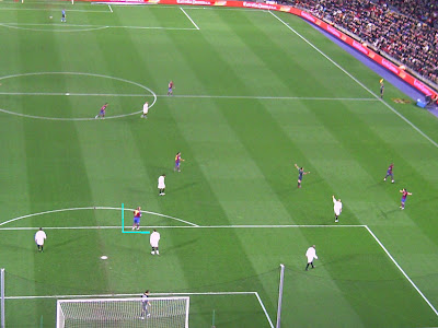 Se pudo ver la defensa 10 metros por delante del área y la delante 10 metros más retrasada que de costumbre. De esto modo, se pudo contener los ataques sevillistas muy bien, apenas se pasaron apuros y el equipo defendía mejor sin necesidad de hacer un desgaste extra. Las fotos nos enseñan como los 2 equipos jugaron en apneas 20 metros.